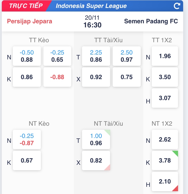 2. Đính kèm ảnh chụp màn hình hiển thị tỷ lệ cược & rõ 2 đội, ghi rõ đội chọn.